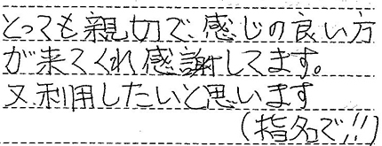 とっても親切で、感じの良い方が来てくれ感謝しています。