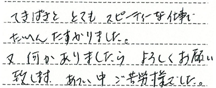 てきぱきととてもスピーディーな仕事でたいへんたすかりました。